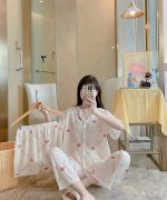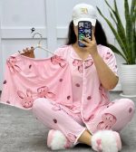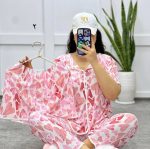 فری سایز 36 تا 42/قد بلوز 60/قد شلوار100/قد شورتک 40/جنس نخی موسیلین