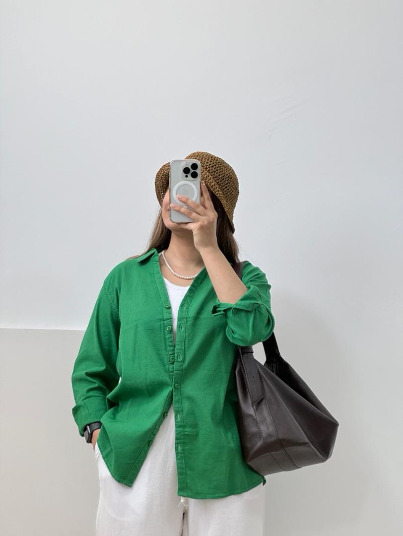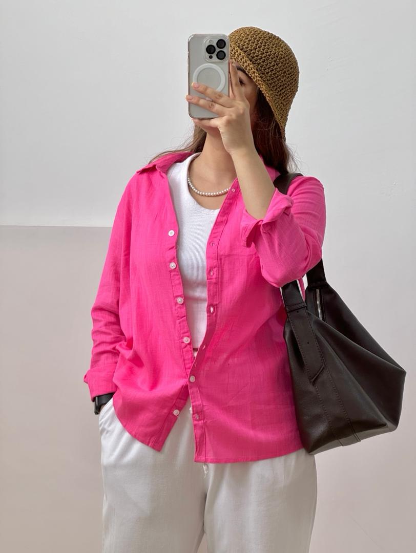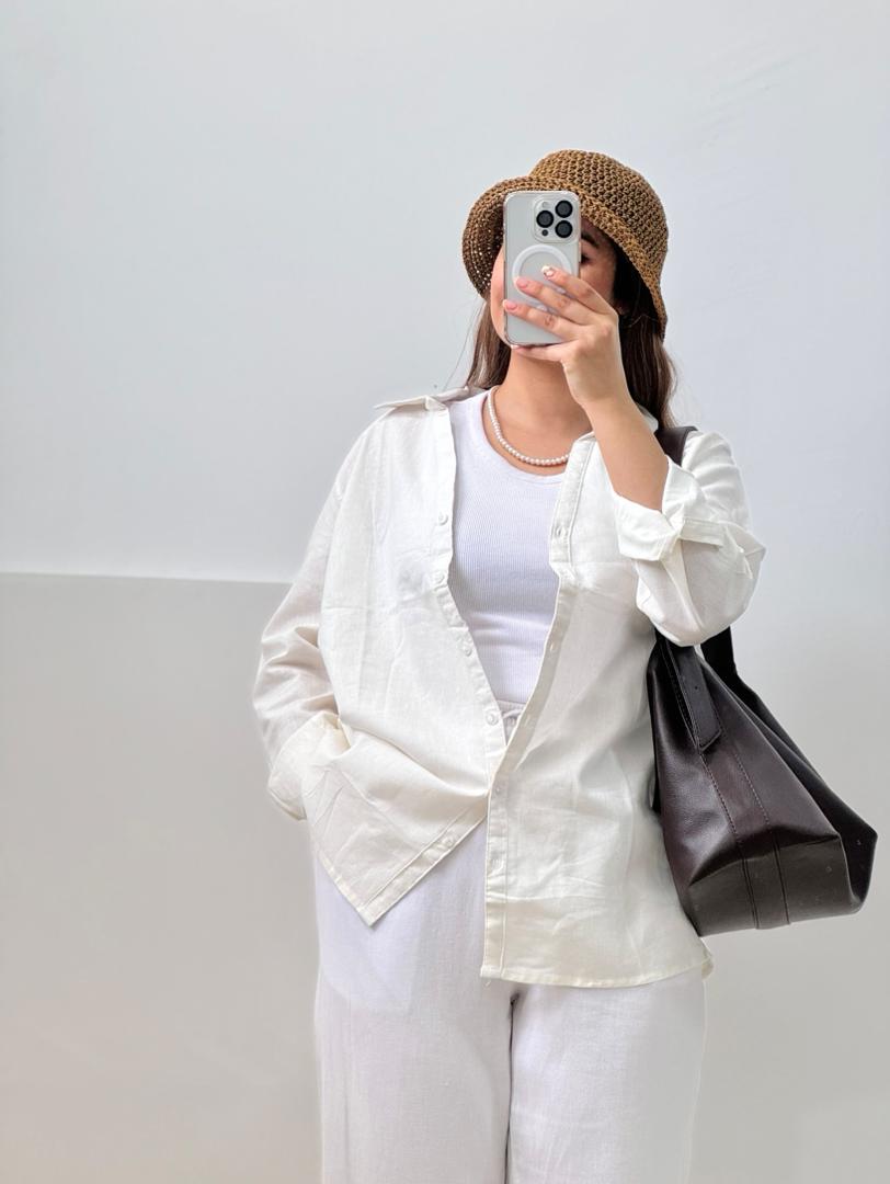 شومیز لینن وارداتی/ فری سایز 36 تا 46/قد 70/